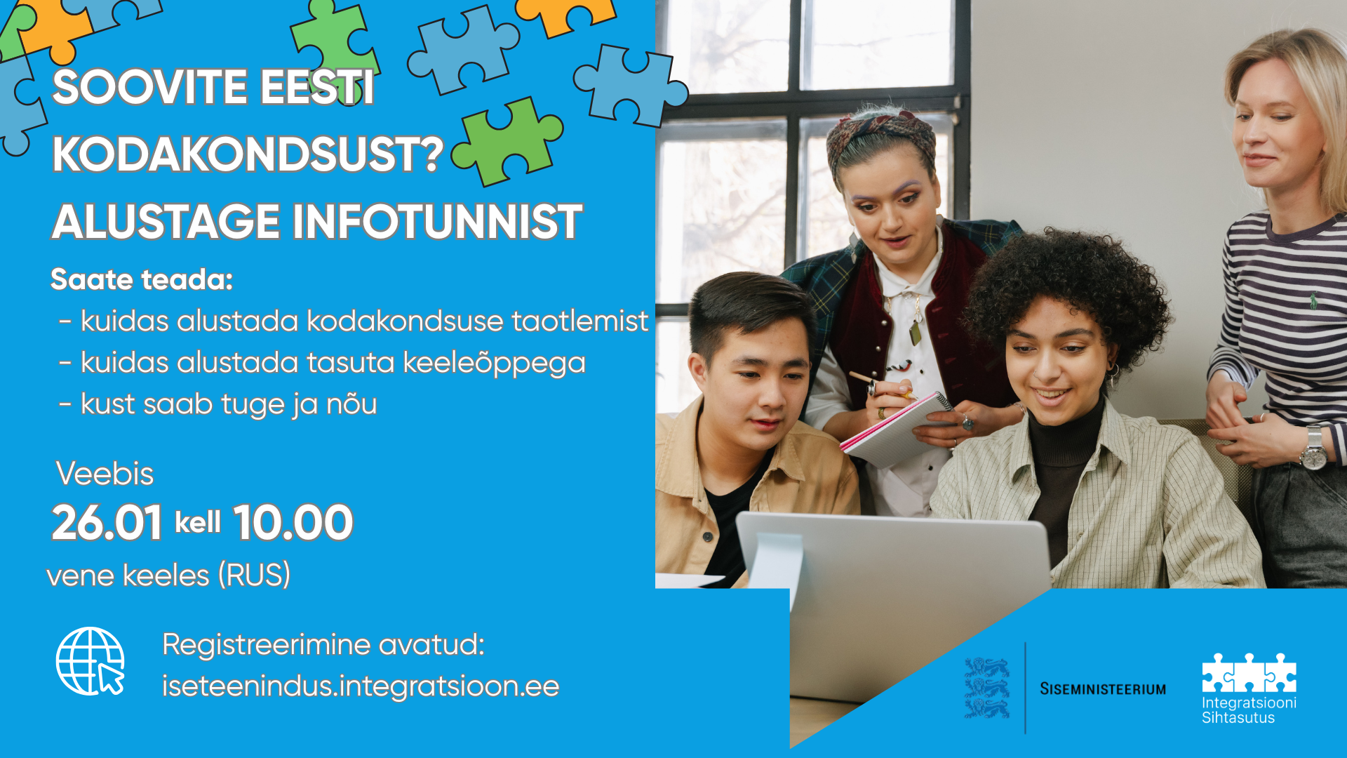 - 18. märtsil kell 10.00 veebis (vene keeles). Registreerimine avaneb 28.01.2026 kell 11.00 iseteeninduses