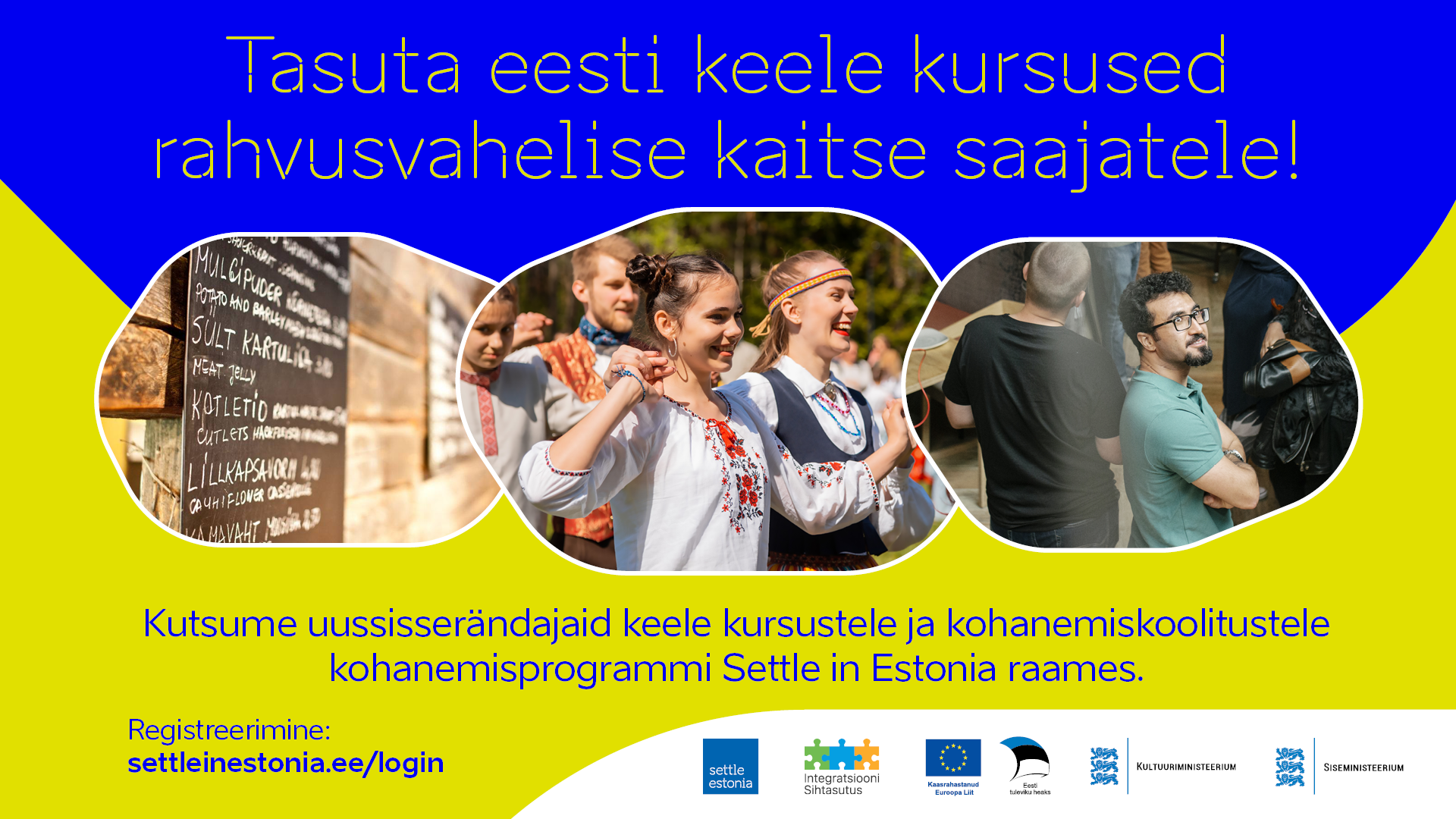 Kohanemisprogrammi Settle in Estonia raames algavad tasuta novembris ja detsembris rahvusvaheliste kaitse saajatele mõeldud eesti keele kursused tasemel A1, A2, B1. Lisaks kutsume Eesti ühiskonda ja eluolu tutvustavatele kohanemiskoolitustele.